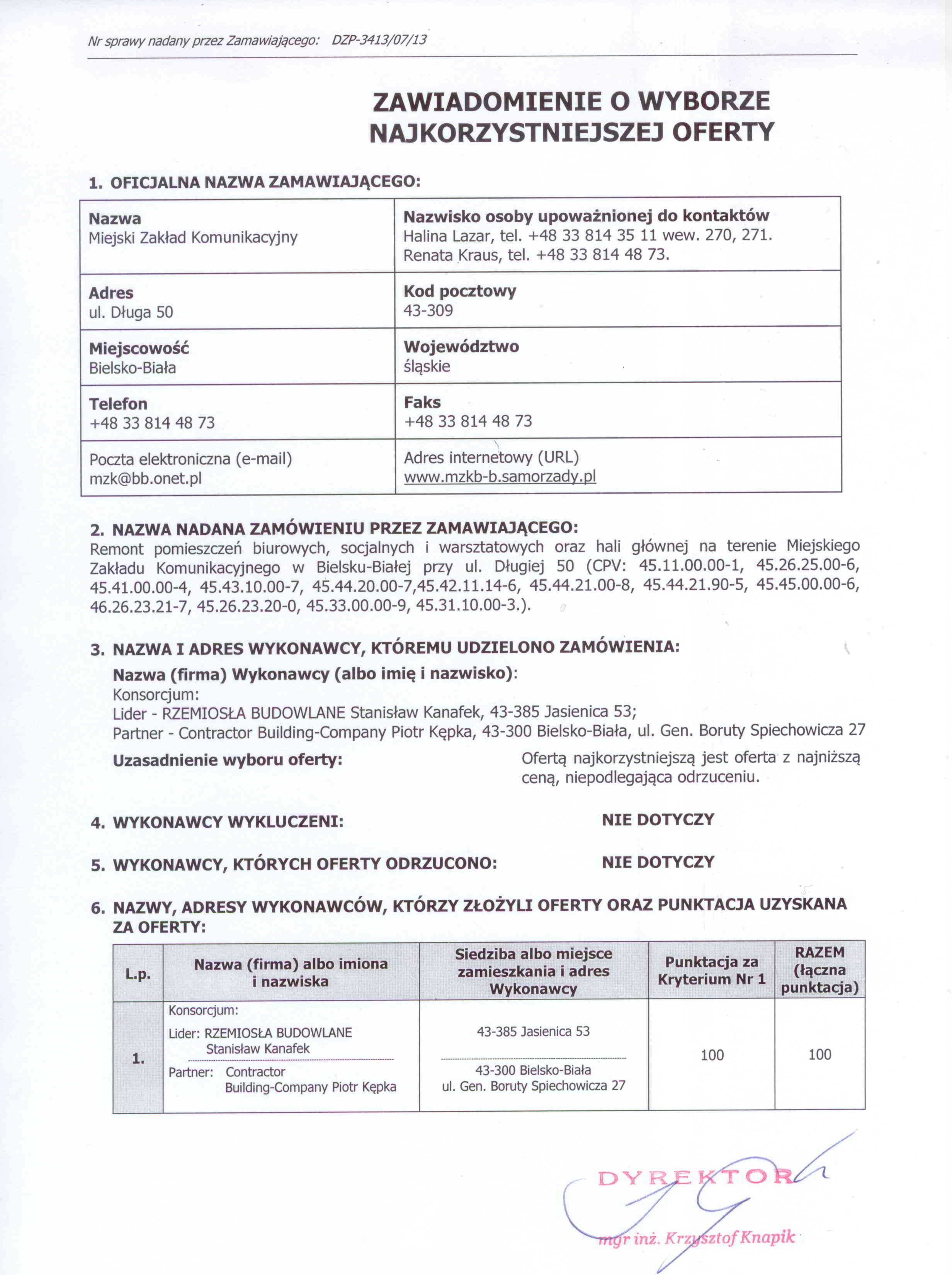 | Typ | Rozmiar | Pobierz | Komentarz | Data dodania | Licznik | graf. | 480 KB | POBIERZ | Zawiadomienie o wyborze najkorzystniejszej oferty | 2013-08-19 14:24:59 | 524 |