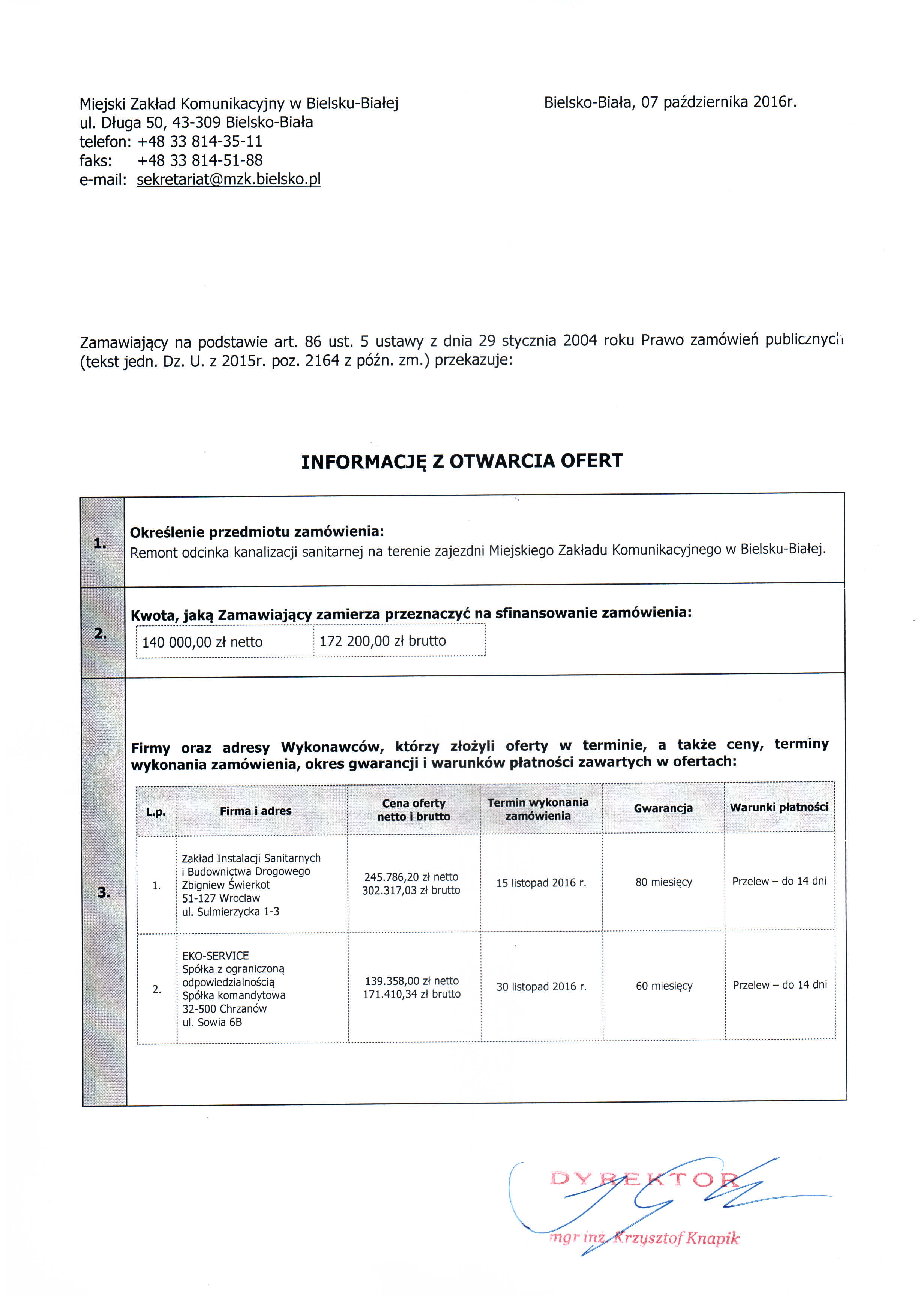 | Typ | Rozmiar | Pobierz | Komentarz | Data dodania | Licznik | graf. | 612.3 KB | POBIERZ | Informacja z otwarcia ofert - art. 86 ust. 5 | 2016-10-07 14:59:47 | 347 |