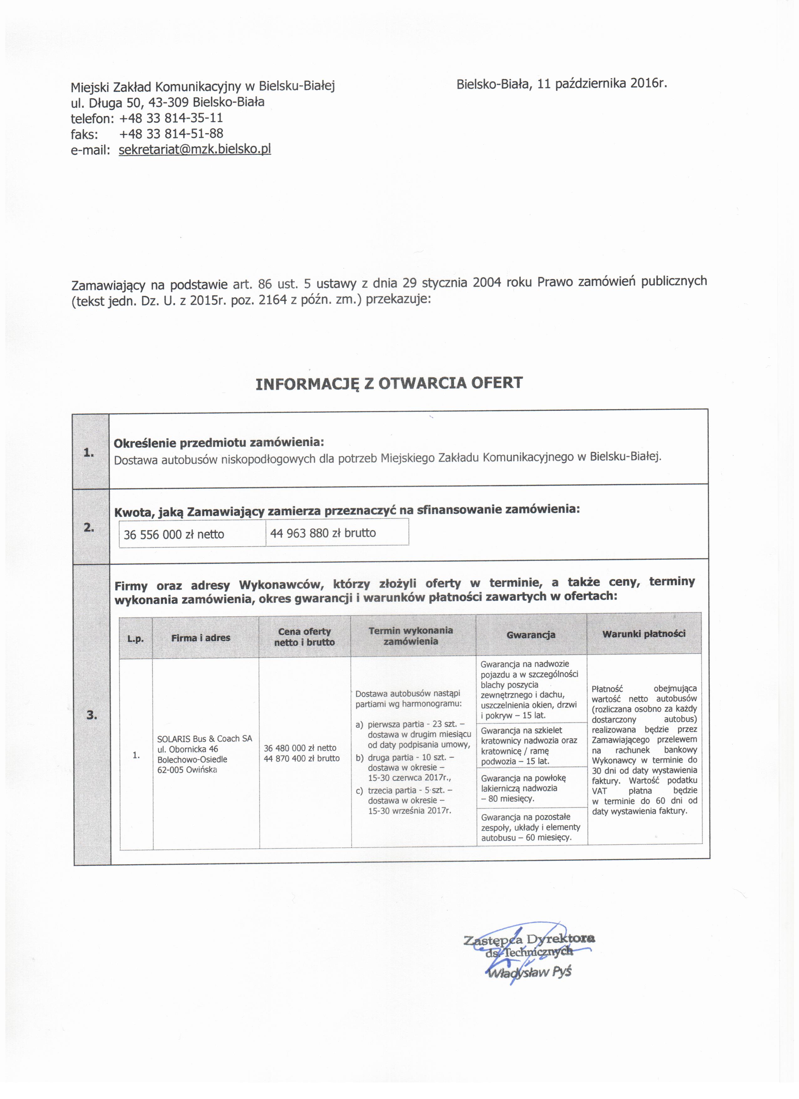 | Typ | Rozmiar | Pobierz | Komentarz | Data dodania | Licznik | graf. | 641.4 KB | POBIERZ | Zawiadomienie - Informacja z otwarcia ofert - art. 86 ust. 5 | 2016-10-11 12:31:54 | 692 |