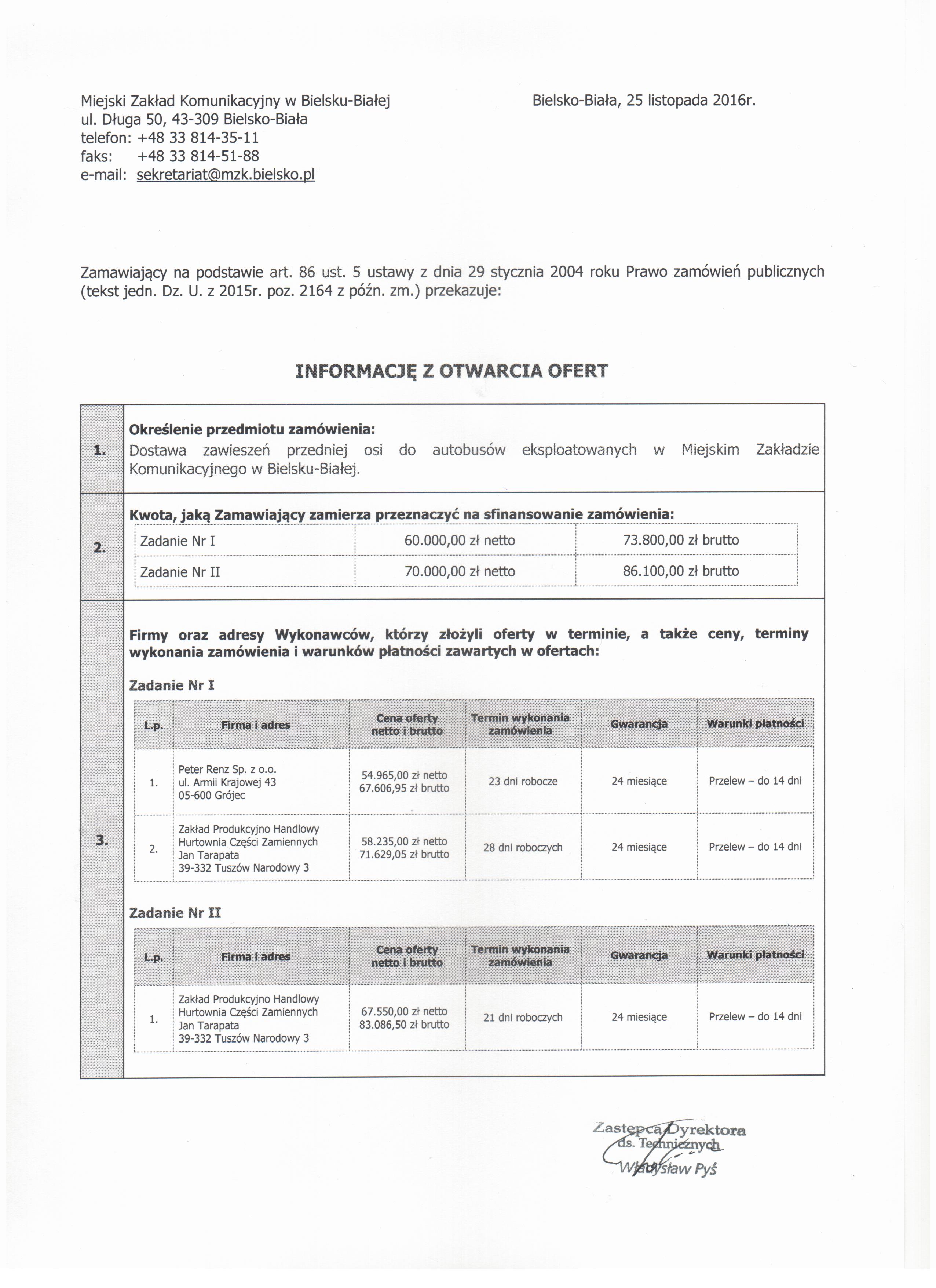 | Typ | Rozmiar | Pobierz | Komentarz | Data dodania | Licznik | graf. | 730.4 KB | POBIERZ | Zawiadomienie - Informacja z otwarcia ofert - art. 86 ust. 5 | 2016-11-25 12:09:12 | 397 |