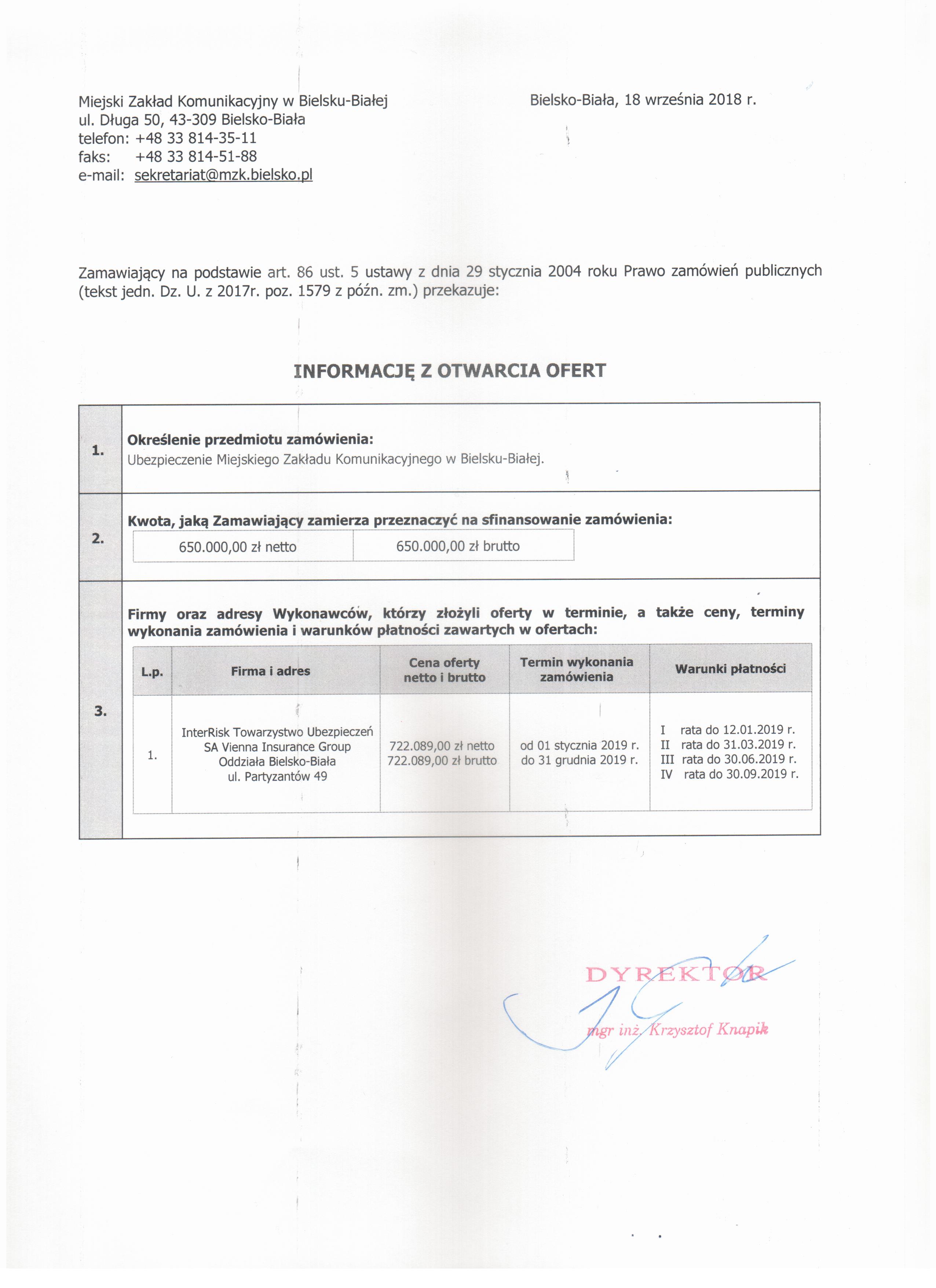 | Typ | Rozmiar | Pobierz | Komentarz | Data dodania | Licznik | graf. | 543.1 KB | POBIERZ | Zawiadomienie - Informacja z otwarcia ofert - art. 86 ust. 5 | 2018-09-18 14:25:43 | 427 |