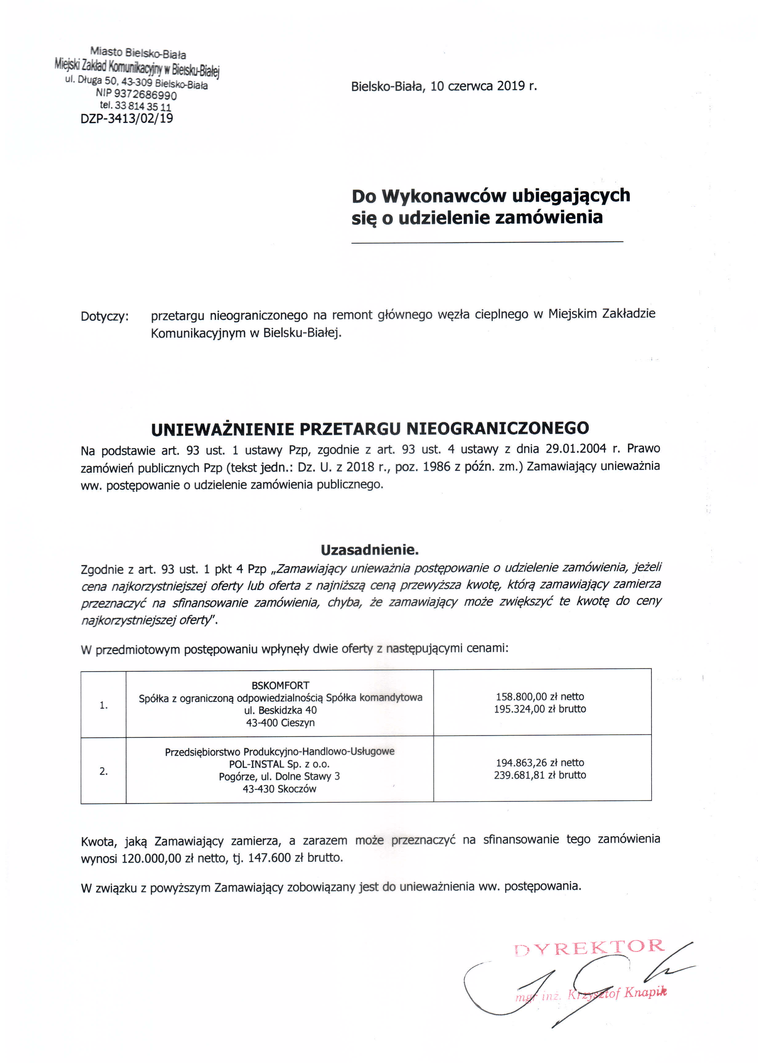 | Typ | Rozmiar | Pobierz | Komentarz | Data dodania | Licznik | graf. | 523.3 KB | POBIERZ | Uniewa偶nienie przetargu-skan | 2019-06-10 10:24:20 | 423 |