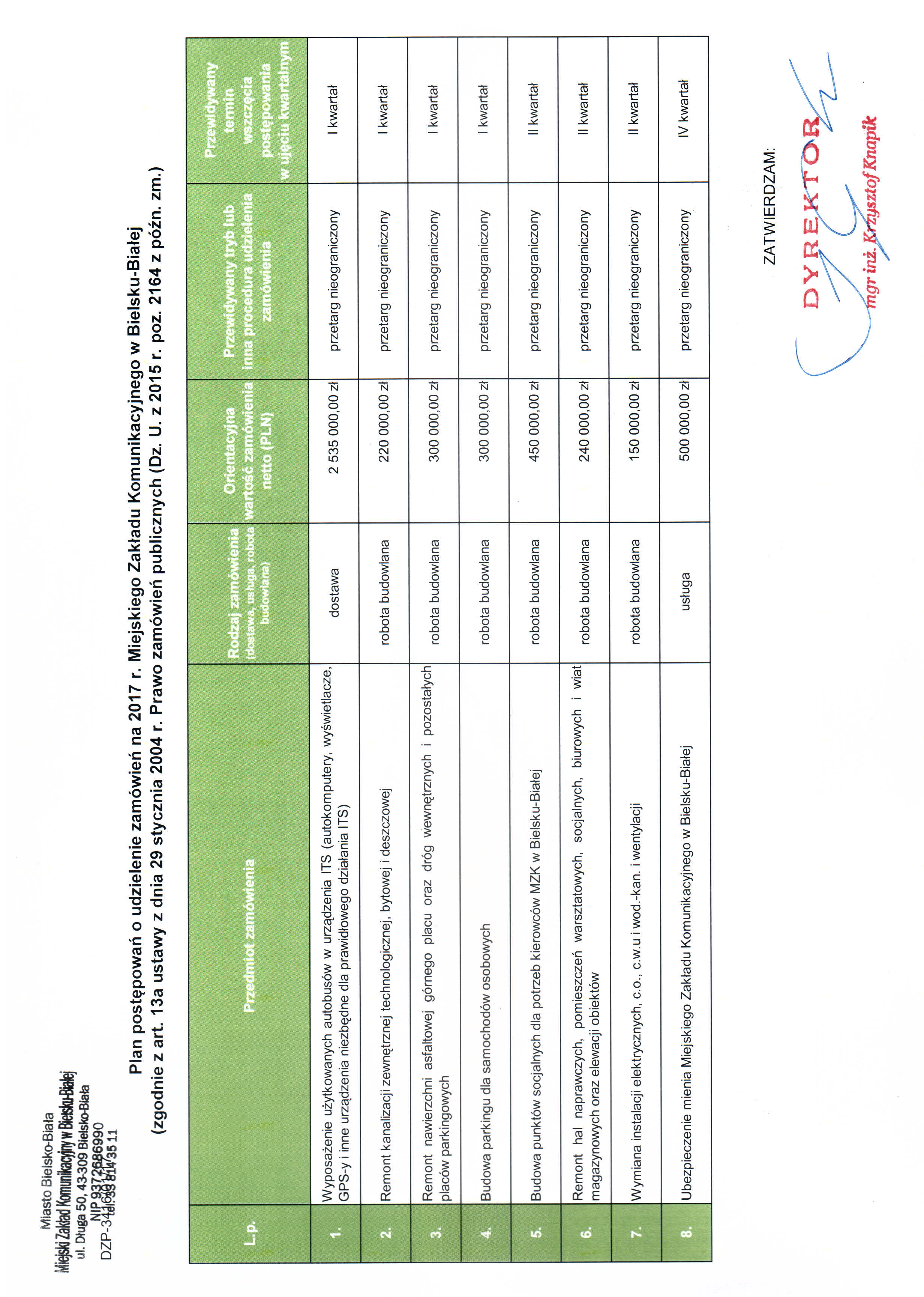 | Typ | Rozmiar | Pobierz | Komentarz | Data dodania | Licznik | graf. | 879.2 KB | POBIERZ | Plan post臋powa艅 o udzielenie zam贸wie艅 na 2017 r. (2) | 2017-03-06 13:43:51 | 549 |