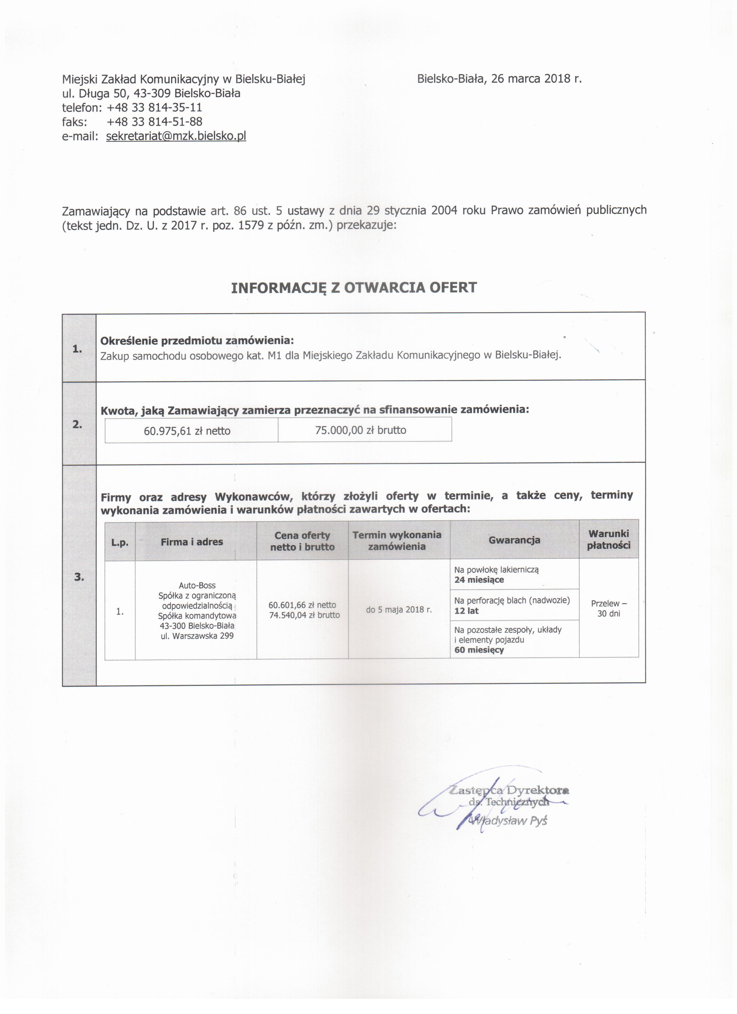 | Typ | Rozmiar | Pobierz | Komentarz | Data dodania | Licznik | graf. | 550.9 KB | POBIERZ | Zawiadomienie - Informacja z otwarcia ofert - art. 86 ust. 5 | 2018-03-26 09:20:17 | 387 |